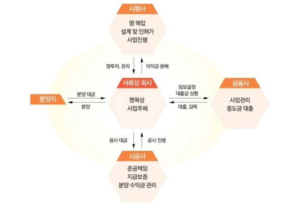 시행사는 인허가를 받은 후 금융기관에 대출을 의뢰합니다, 금융기관에서는 *SPC에 대출을 해주고 해당 사업 이외에는 돈을 써서는 안된다는 약정도 체결합니다.