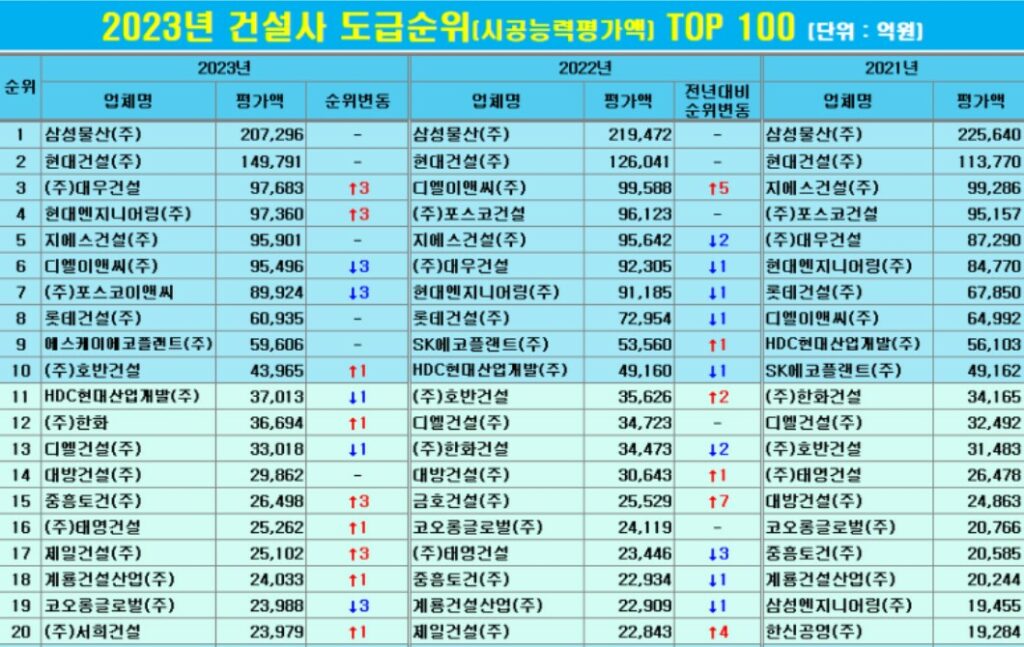 도급 순위란 개별건설회사의 도급한도액 규모의 크기에 따라 순위를 매겨놓은 것 입니다. 도급에 대한 설명은 위에 있습니다.
