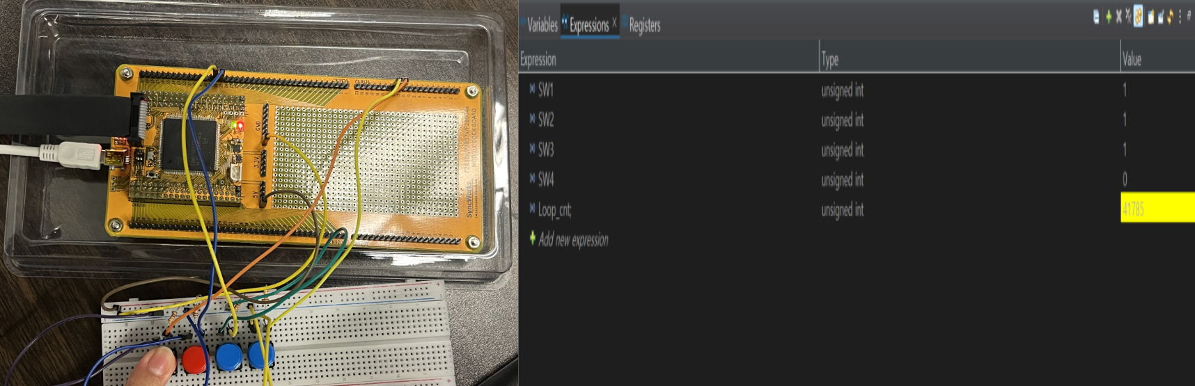 - Switch : Pull-down 저항으로 구성된 4개의 스위치 회로입니다.