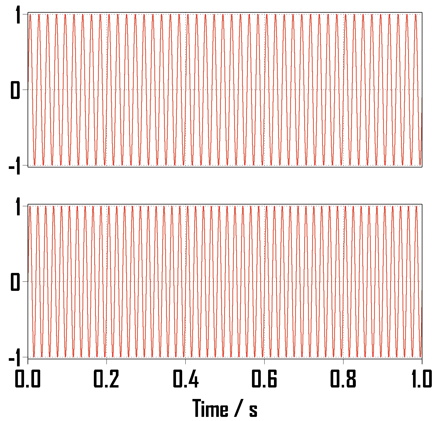 입력 정현파와 램프 함수의 진폭은 1, 주파수는 50Hz→45Hz로 주었습니다.