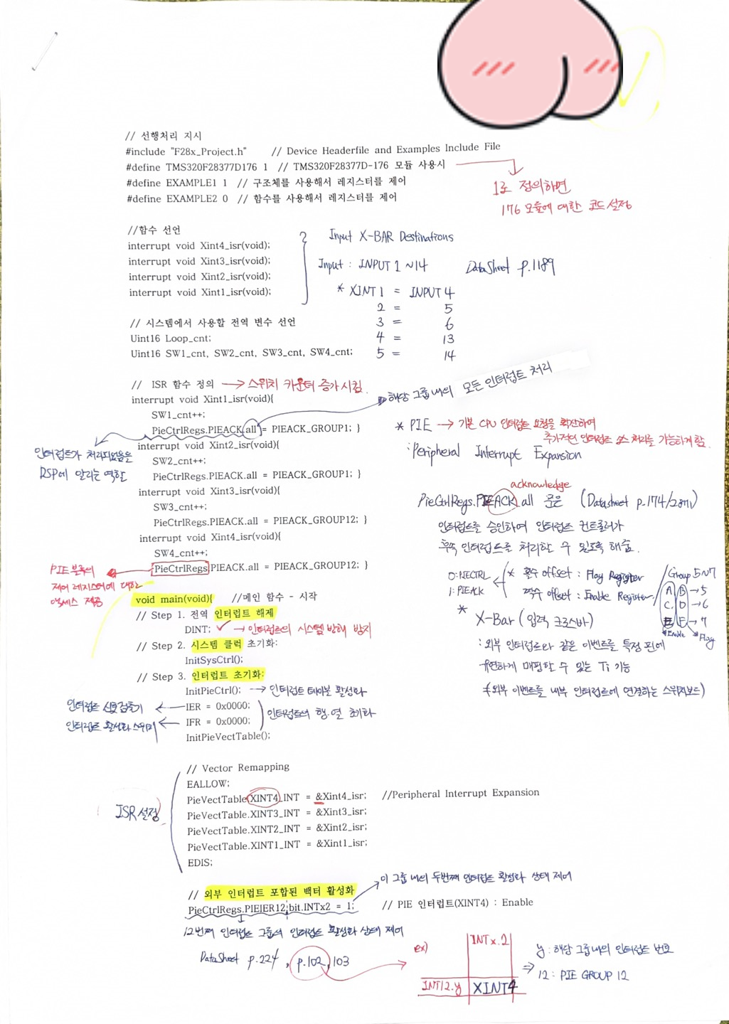 *PIE(Peripheral Interrupt Expansion) : 기본 CPU 인터럽트 요청을 확산하여 추가적인 인터럽트 처리를 가능하게 한다.