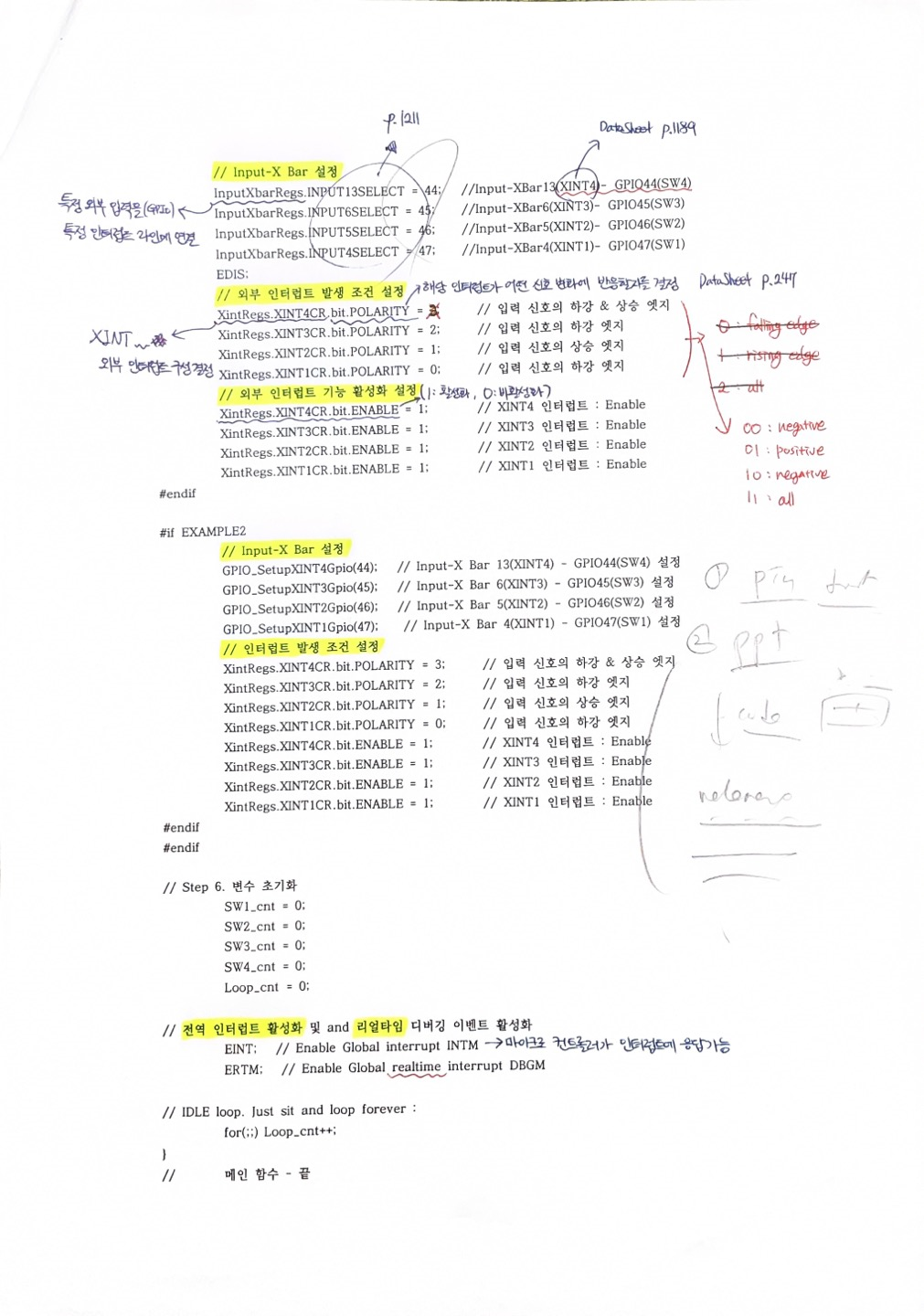 이상으로 GPIO, 입력, 외부 인터럽트로 사용, Input X-Bar에 대한 설명을 마치도록 하겠습니다.