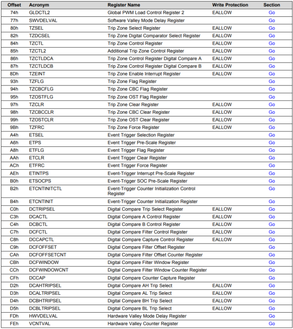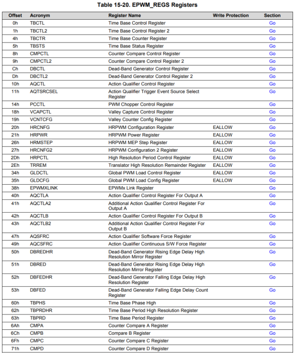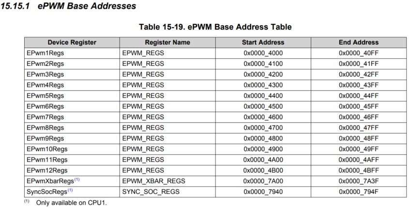 EPwm2Regs.TBCTL.bit.HSPCLKDIV = 0; // TBCLK = [SYSCLKOUT / ((HSPCLKDIV*2) * 2^(CLKDIV))]