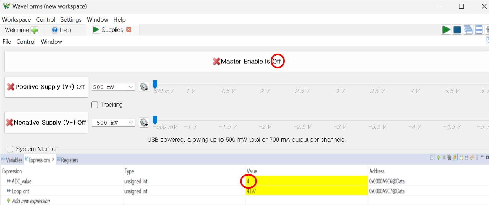 - WaveForm 실행 후 DC인가(Supplies) 준비