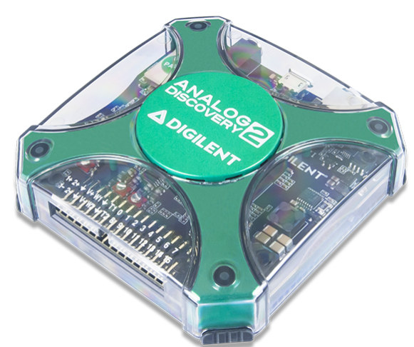 하지만 저희 연구실에 해당 연습용 보드가 없어 위에 보이는 Digilent Analog Discovery 2™를 사용하였습니다. WaveForm 프로그램과 함께 사용하여 DC인가(Supplies)를 해주었습니다.