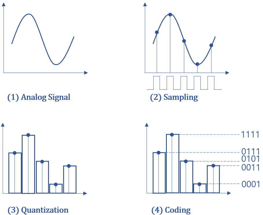 Sampling을 통해 측정한 값을 Digital 값으로 바꾸는 과정이 Quantization이다.