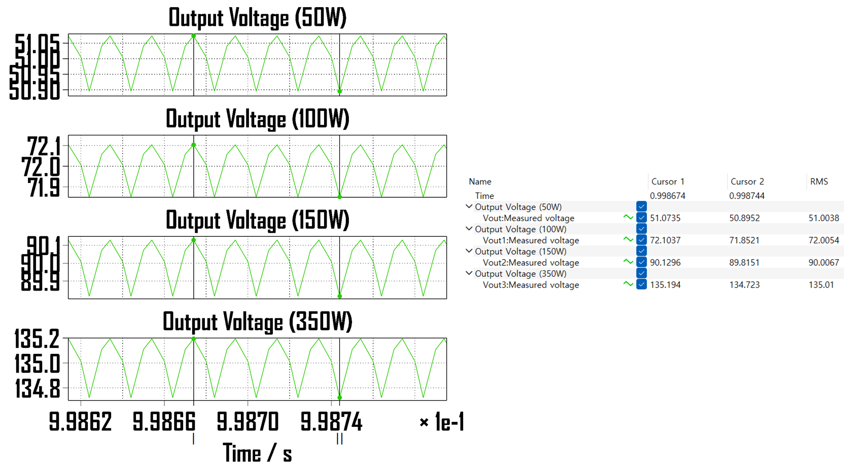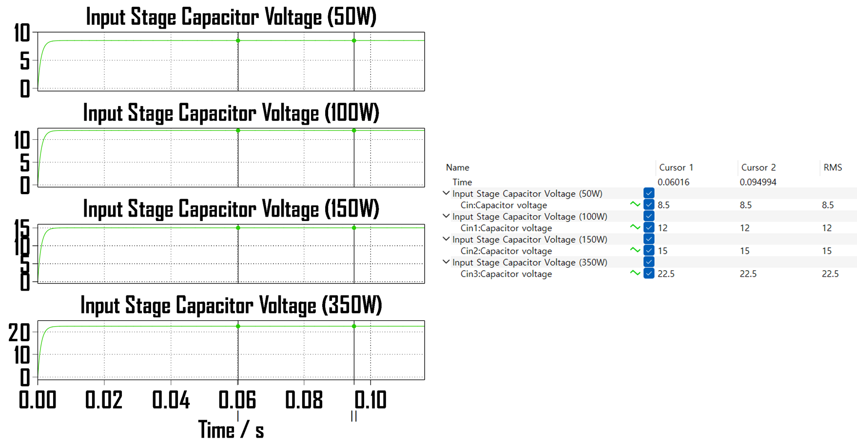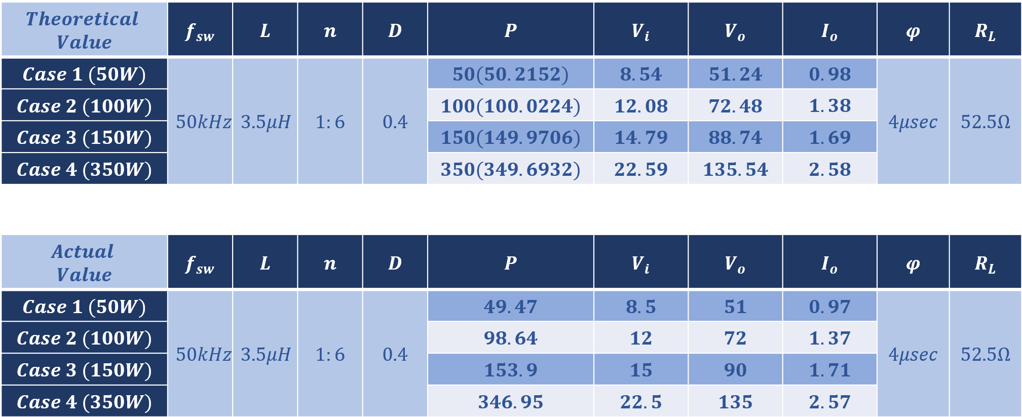 Output Power 50W, 100W, 150W, 350W 이렇게 4가지의 경우를 놓고 설계를 하였고,
