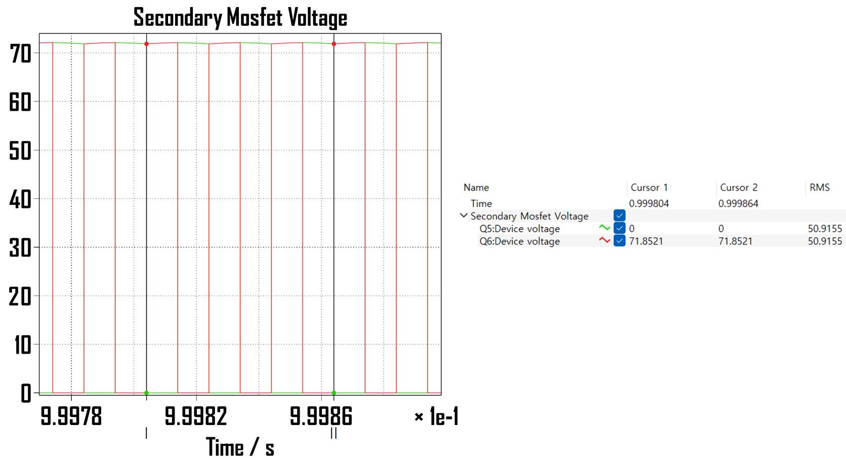 - Secondary Mosfet Voltage (Q5, Q8 / Q6, Q7)