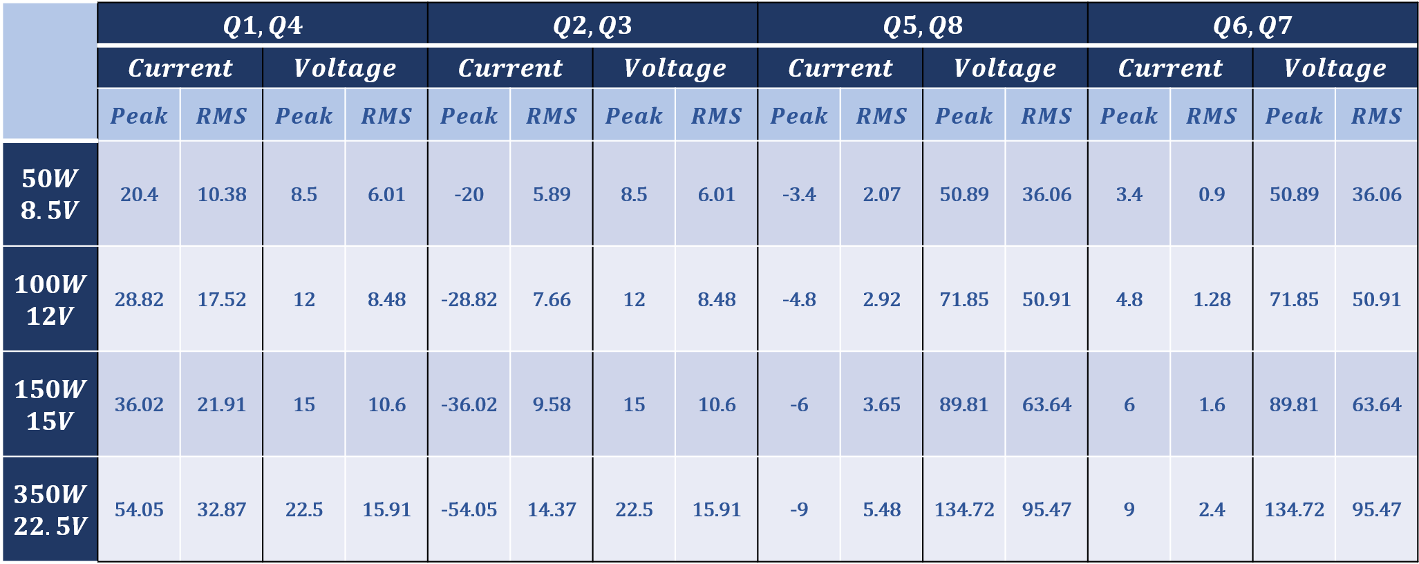 - Primary Mosfet Voltage (Q1, Q4 / Q2, Q3)