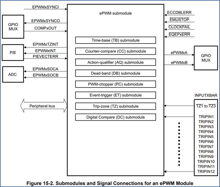*ePWM : 향상된 펄스 폭 변조는 일반적으로 PWM의 고급 버전을 나타냅니다. 여기에는 더 나은 제어 및 효율성을 위한 추가 기능이 포함되어 있습니다. 여기에는 향상된 분해능, 더 높은 정확도, 보다 유연한 제어 옵션(예: 위상 변이 기능) 및 특정 애플리케이션에 특정한 추가 기능(예: 모터 제어)이 포함될 수 있습니다.