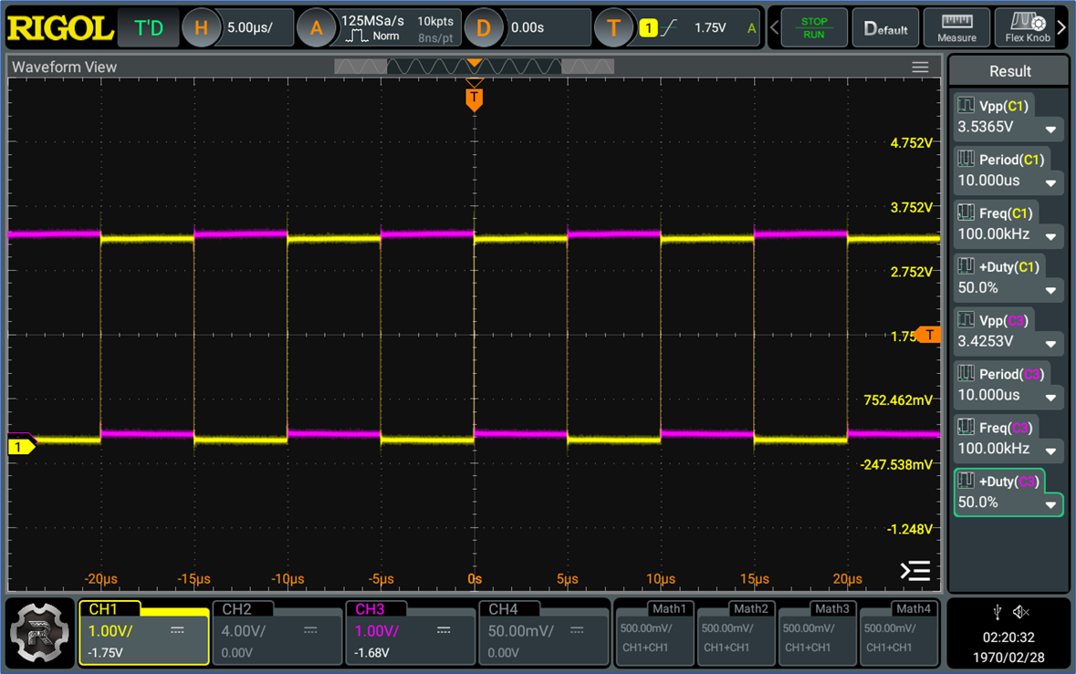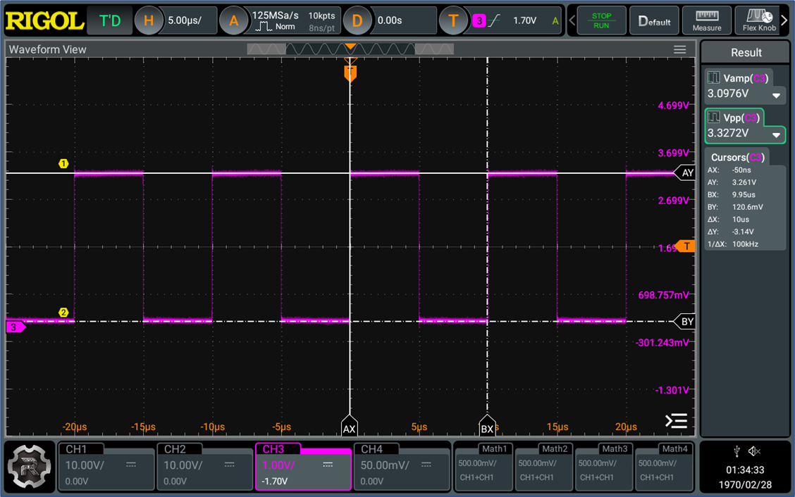 2. PWM 신호 생성 Test1. Single-Channel 100kHz, Duty-Ratio 0.5(50%)