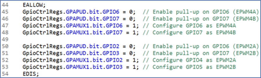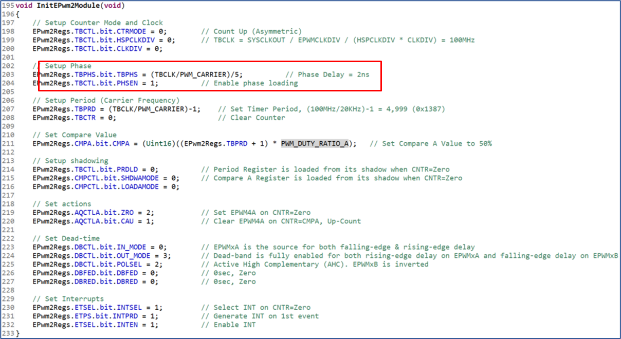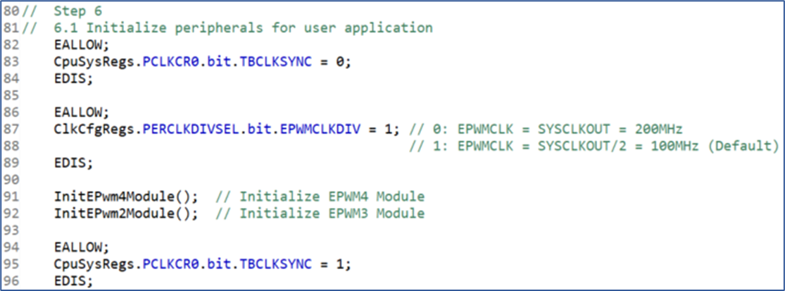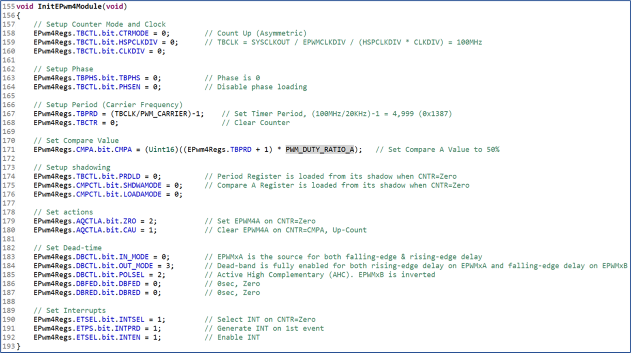 InitEPwmxModule() 함수에 작성된 내용 중 언급하고 넘어갈 내용이 있습니다.