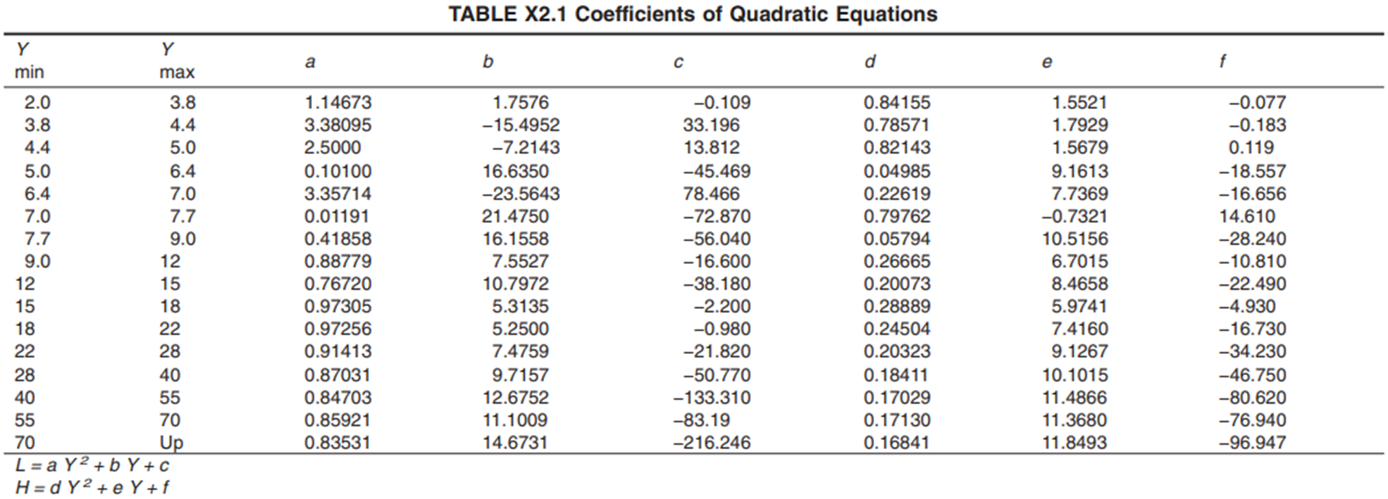 - L과 H의 값은 Table X2.1을 사용하여 결정할 수 있다.